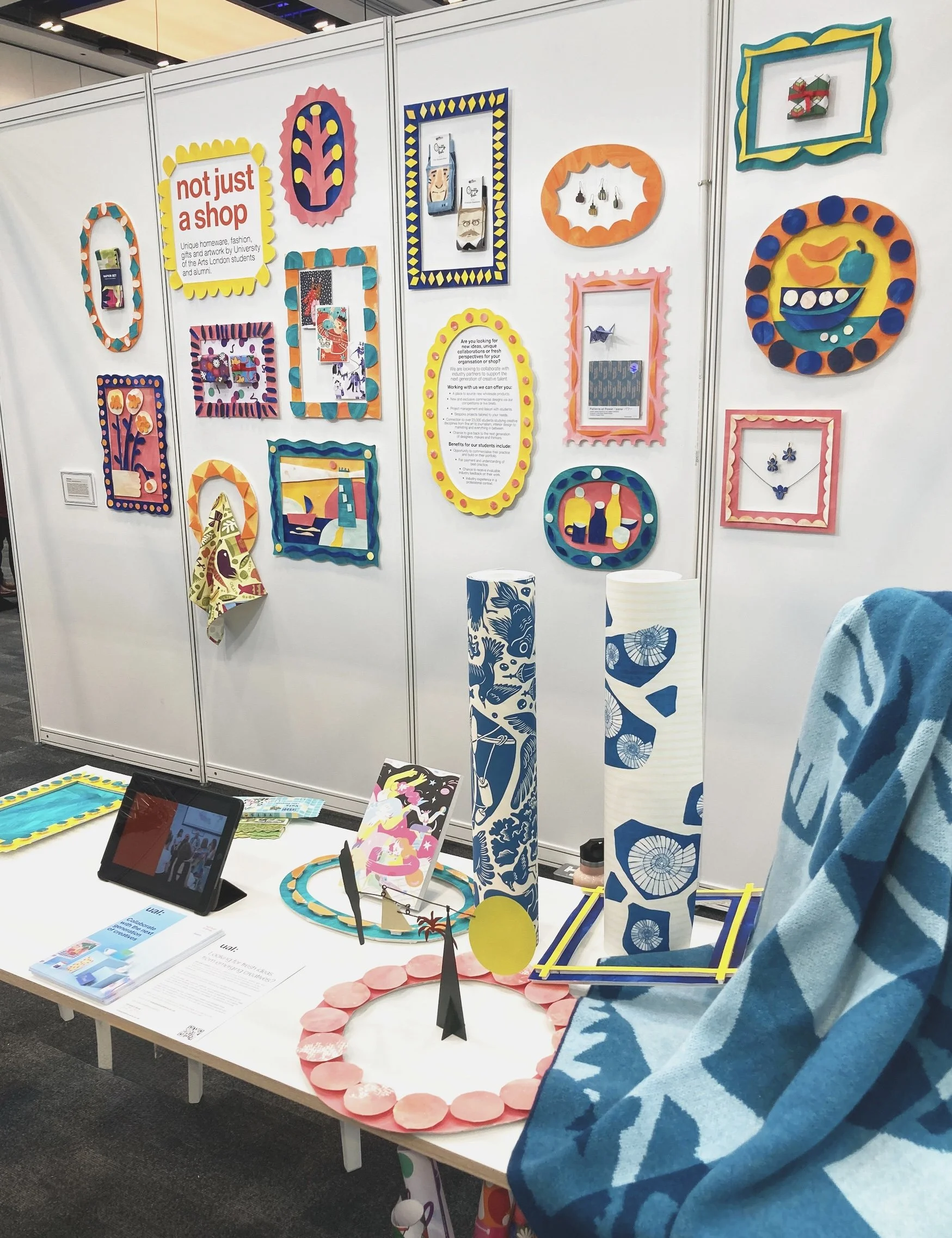 I was commissioned by Not Just a Shop to design their exhibition stand for the Association for Cultural Enterprises Trade Show in Wales. The concept was inspired by a gift wrap I had previously designed, which is also available in their shop
