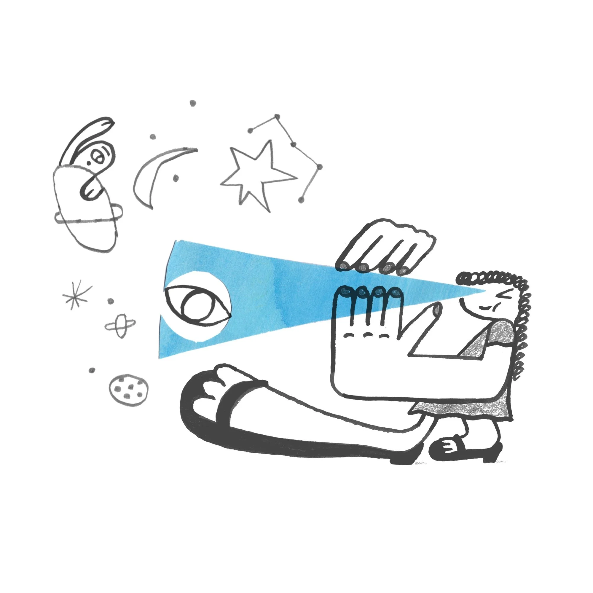 Spot illustrations drawn from unwanted scraps of collage paper.